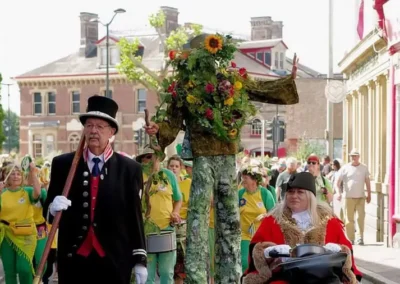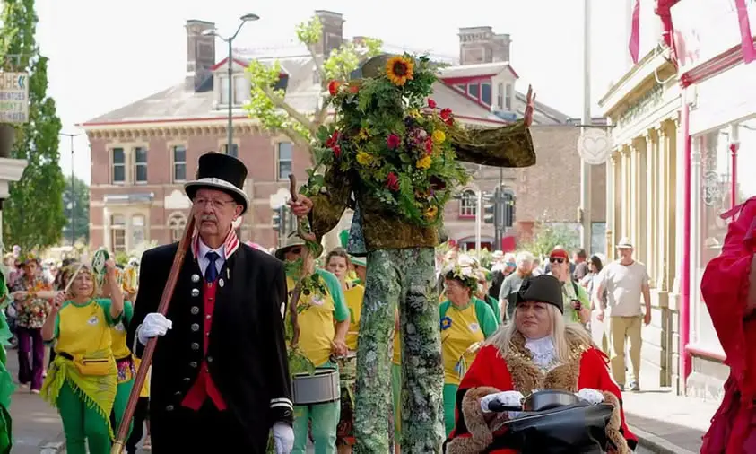 After centuries of quiet, it was Rev. Anthony Geering in 1982 who brought the Green Man Day back to life. The revived Pilton Green Man Day became a month-long celebration in June and July, complete with historic pageants, bustling stalls along Pilton Street, a Flower Festival, and plenty of community fun.